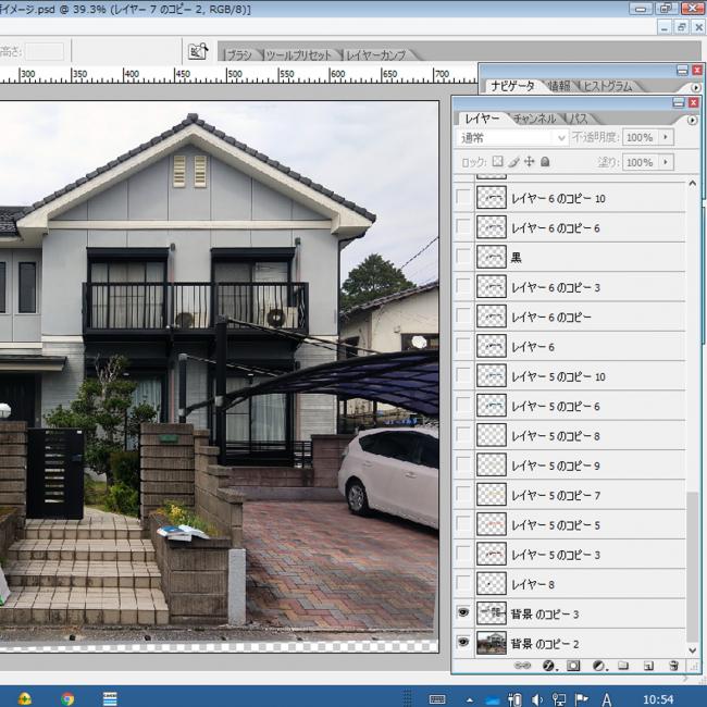 施工前写真をPhotoshopに 取り込みます。  | ![]()  |